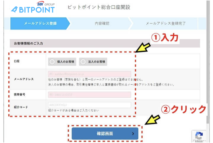 1.BITPOINT(ビットポイント)にメールアドレスとパスワードを登録する