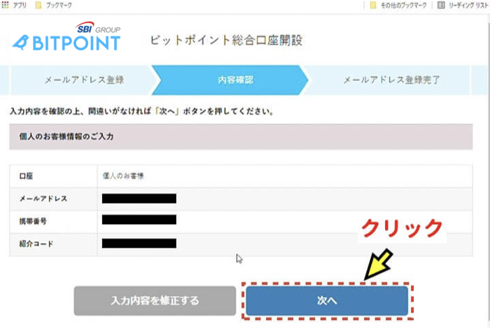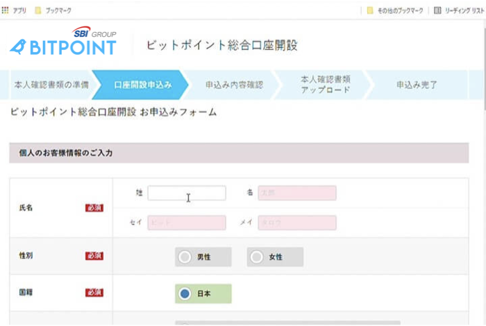 2.BITPOINT(ビットポイント)総合口座開設申請を行う