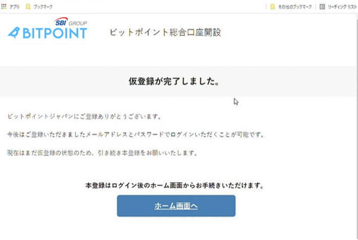 パスワードの設定が完了すると以下の画面が表示され、BITPOINTにログインできます。