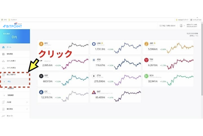 ここからは実際にBITPOINT(ビットポイント)の口座開設手順をパソコンの画面で説明していきます。